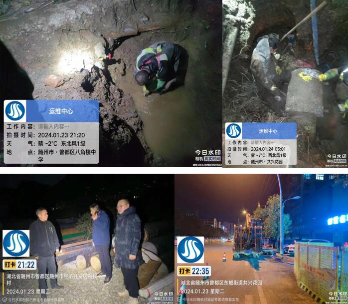 1月23日,有市民反映鐵路片區(qū)下坡處地面有積水,附近有學校,周邊住戶也較多,對市民出行造成極大安全隱患。測漏人員第一時間到場勘查,排查后發(fā)現(xiàn)漏點在下坡處拆遷區(qū)內(nèi),工作人員及時與當?shù)厣鐓^(qū)居委會和相關部門取得聯(lián)系,經(jīng)過多方協(xié)調(diào),滿足施工條件后,立即組織搶修隊伍進行開挖,在寒風凜冽的深夜,搶修人員爭分奪秒,全然顧不上他們已凍得通紅的雙手,只希望以最快速度完成改造作業(yè),最大程度減小停水作業(yè)對居民的影響。當晚21點25分歷時3小時將DN100管道漏水點搶修完畢,保障了極寒天氣下周邊居民、學生出行的安全。