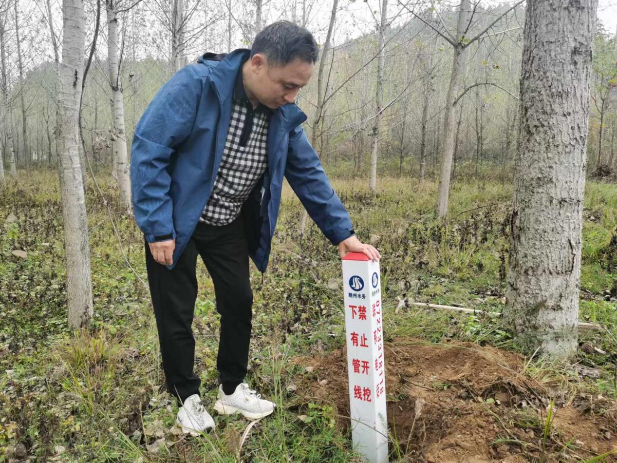 在施工現(xiàn)場(chǎng),工作人員正緊鑼密鼓地進(jìn)行標(biāo)志樁的挖坑、埋設(shè)與澆筑作業(yè),完成的幾處標(biāo)志樁連成一條直線,將地下管道位置清晰地“反射”到地面,為供水管道賦予了明確的身份標(biāo)識(shí)。這些新標(biāo)志樁的設(shè)計(jì)獨(dú)具匠心,樁身上鐫刻有“下有管線 禁止開挖”“隨州水務(wù)”“熱線電話0722-3318118”等字樣,既直觀又醒目。市民們看到標(biāo)志樁后一目了然地下管線的埋設(shè)情況,同時(shí)熱線電話可以讓每個(gè)市民都參與到供水管線的保護(hù)中來(lái),共同守護(hù)供水管線安全。