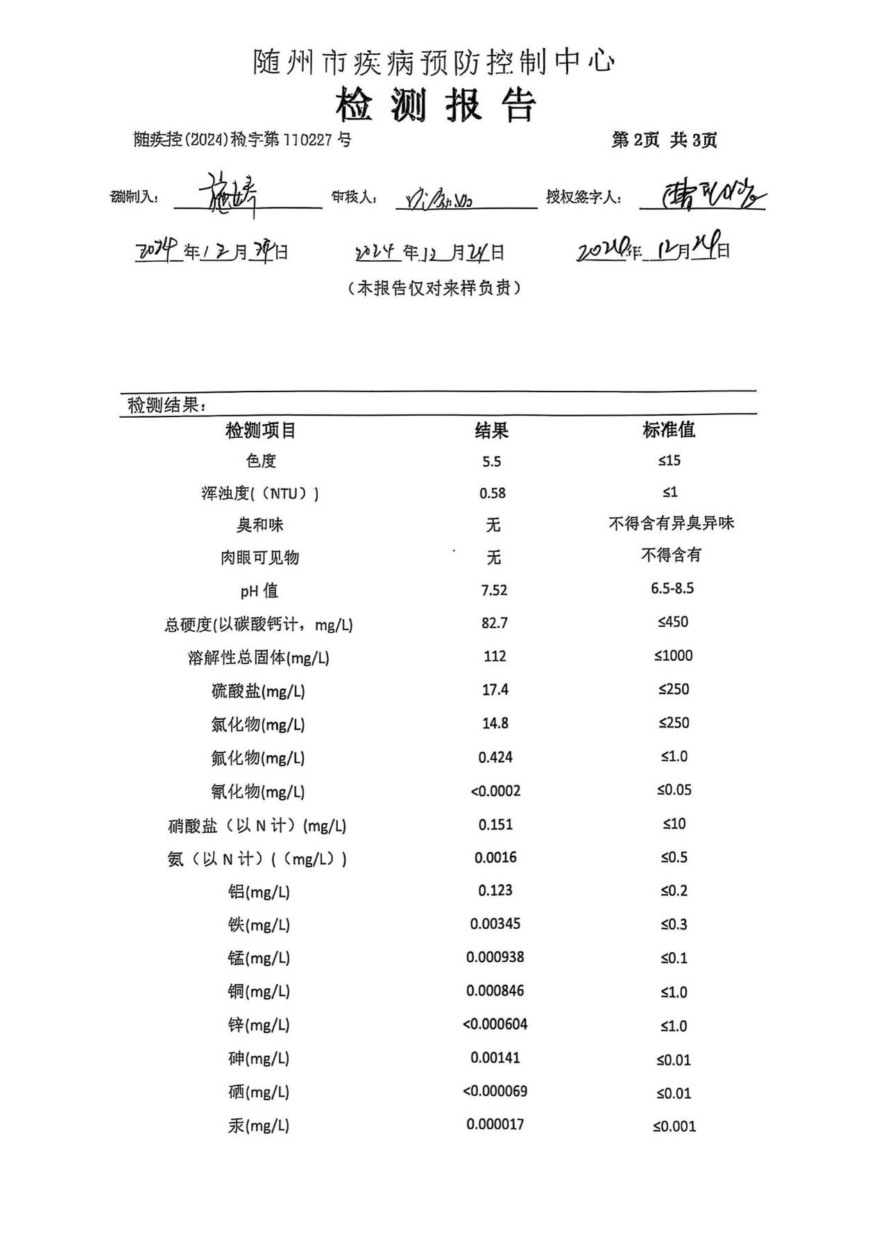 二、我公司在水質(zhì)管理上嚴(yán)格執(zhí)行兩級(jí)管理、三級(jí)檢測(cè)制度,出廠水水質(zhì)均符合國(guó)家《生活飲用水衛(wèi)生標(biāo)準(zhǔn)》GB5749-2022的要求,請(qǐng)廣大用戶放心使用。