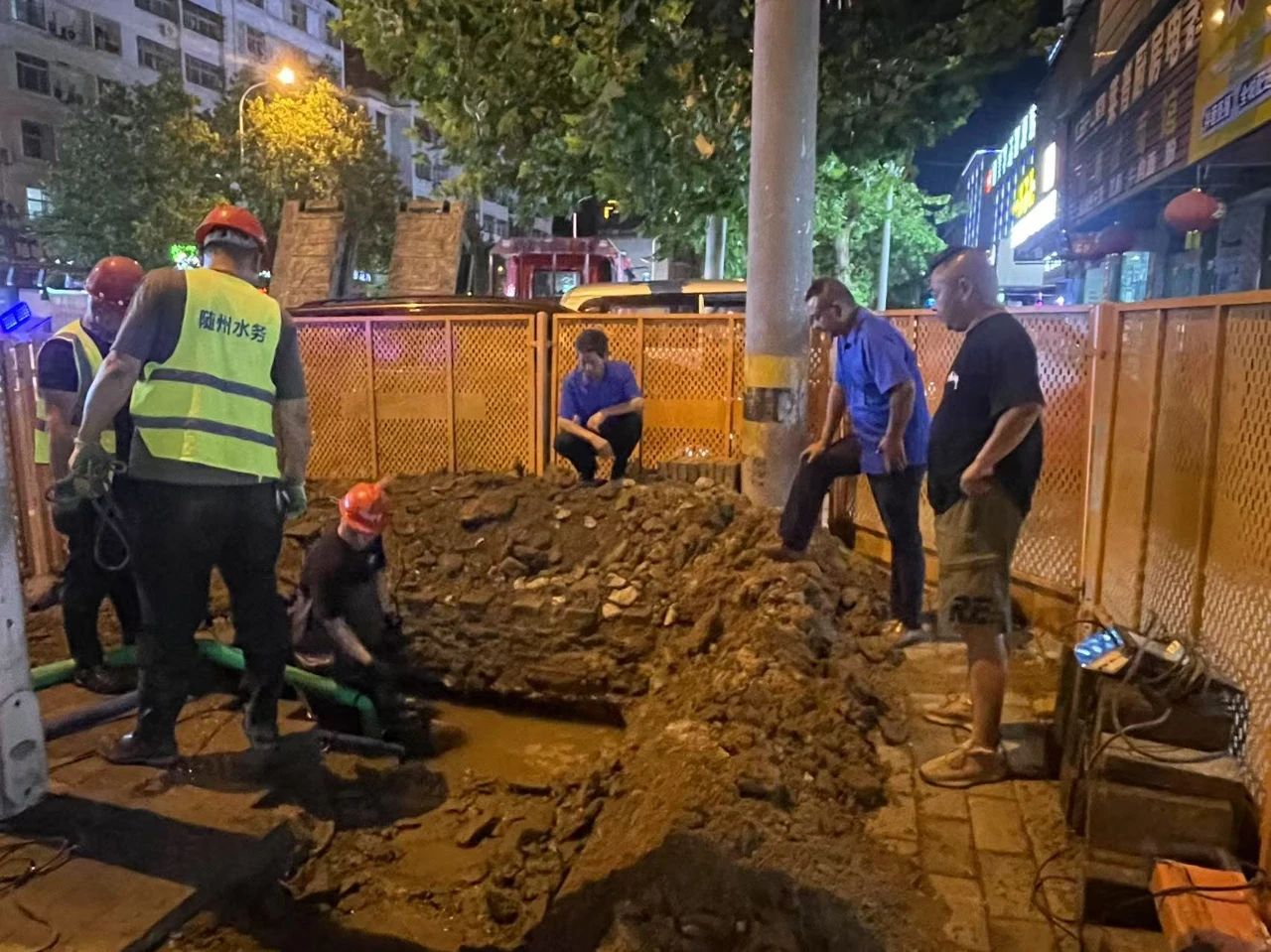 2024年2月4日22時許,隨州市水務集團24小時供水服務熱線3318118接到用戶反映稱,季梁大道與交通大道交叉口附近疑似出現(xiàn)管道漏水情況。當時隨州正遭遇著一場歷史少見的低溫雨雪冰凍災害天氣,通往現(xiàn)場的路面上被凍雨和冰雪覆蓋,車輛難以通行。然而“災情就是命令”,面對持續(xù)漏水可能造成更加嚴重的后果,周新和他的“黨員突擊隊”迎寒而上,冒雪“逆行”,克服重重困難抵達現(xiàn)場,連夜展開搶修工作。經(jīng)過現(xiàn)場勘查,終于查找出漏水原因。但在嚴寒天氣下,機械進出困難,給搶修帶來了極大難度。