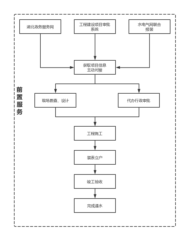 (一)通過政企數據共享及通過湖北省工程建設審批系統(tǒng)、湖北政務服務網等渠道,獲取用戶信息,主動對接,主動掌握用戶用水需求,根據接入地點的不同和用戶需求,確定是否需要在地塊紅線外增設接入管線,并將后續(xù)相關事項告知用戶。